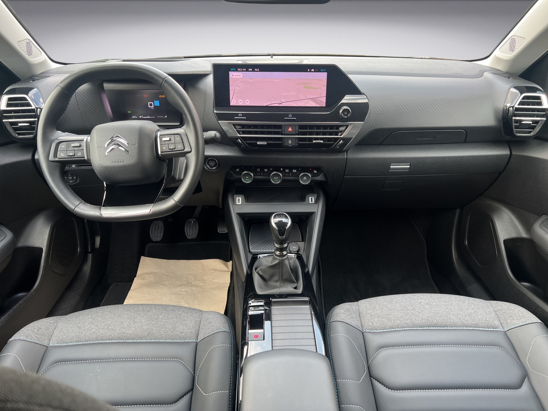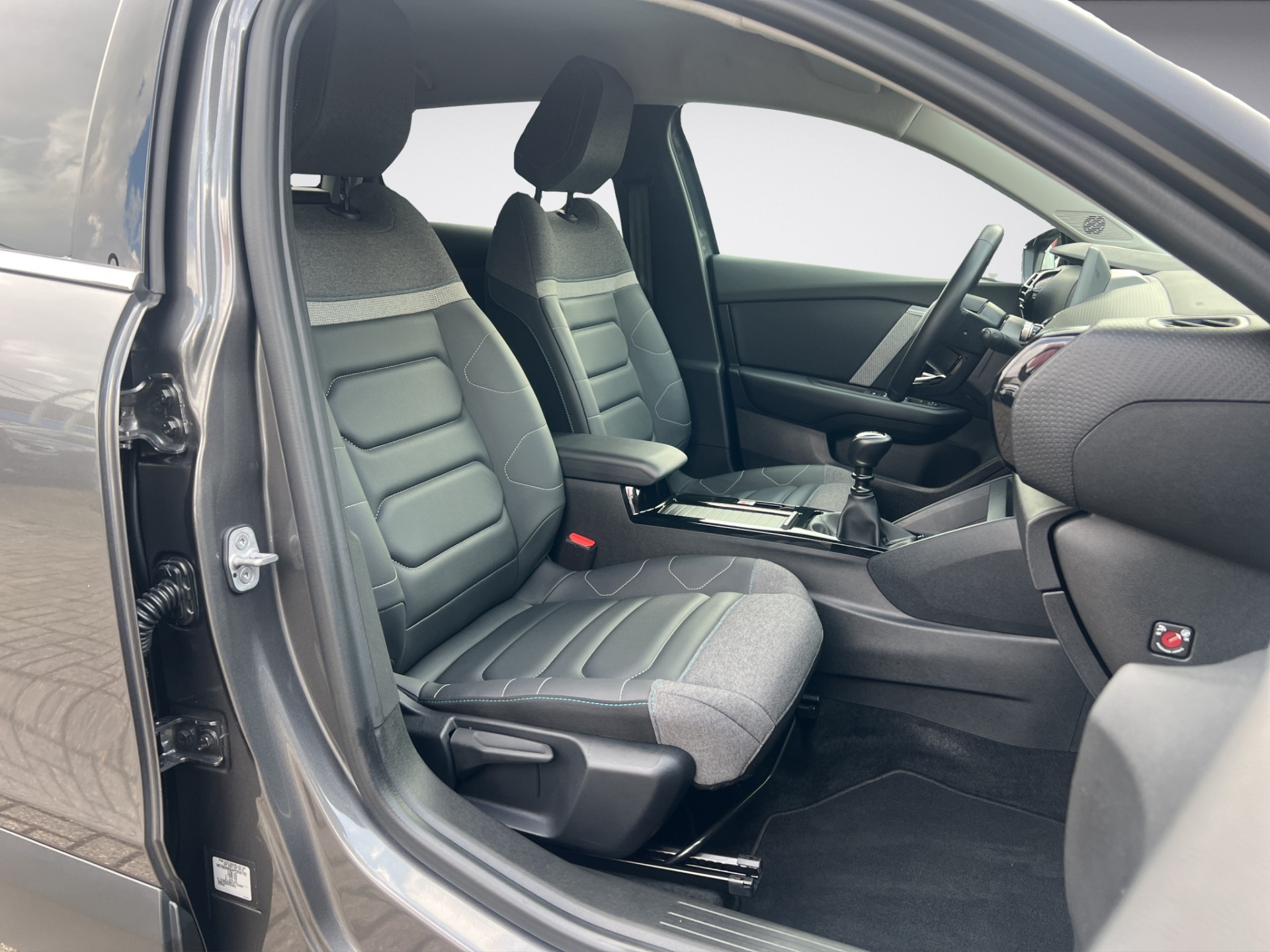 - *Drive-Assist-Paket**, Sicherheits-Paket plus, Fahrassistenz-System: Notruf- und Assistance-System (CITROEN Connect), Geschwindigkeits-Regelanlage (Tempomat) inkl. Geschwindigkeits-Begrenzeranlage, Fahrassistenz-System: Aktiver Notbrems-Assistent (Active Safety Brake), Fahrassistenz-System: Kollisionswarnsystem, Fahrassistenz-System: Verkehrszeichenerkennung, Fahrassistenz-System: Verkehrszeichenerkennung Plus (Geschwindigkeits-Regel-/Begrenzeranlage), Fahrassistenz-System: aktiver Spurassistent (Lenkunterstützung), Fahrassistenz-System: Aufmerksamkeits-Assistent (Müdigkeitserkennungs-Sensor), **Elektron. Stabilitäts-Programm (ESP)**, Antischlupfregelung (ASR), **Scheinwerfer Full-LED**, Einschaltautomatik für Fahrlicht, **Style-Paket**, Seitenscheiben hinten und Heckscheibe dunkel getönt, Airbag Beifahrerseite, Airbag Beifahrerseite abschaltbar, Airbag Fahrerseite, Anti-Blockier-System (ABS), Außenspiegel elektr. verstell-, heiz- und anklappbar, Außenspiegel schwarz, Bordcomputer, Citroen Smart Pad Support, Color-Paket Anodised-Blau, Connecting-Box, Fahrassistenz-System: Berganfahrhilfe, Fahrassistenz-System: Fernlichtassistent, Fahrassistenz-System: Totwinkel-Assistent mit Einparkhilfe vorn und hinten, Fensterheber elektrisch hinten, Fensterheber elektrisch vorn, Freisprecheinrichtung Bluetooth, Getriebe 6-Gang, Head-up-Display, Innenspiegel mit Abblendautomatik, Isofix-Aufnahmen für Kindersitz an Rücksitz, Kamerasystem Vision 360 Grad, Karosserie: 5-türig, Klimaautomatik, Fahrer-/Beifahrerseite getrennt regelbar, Kopf-Airbag-System, Kopf-Airbag-System hinten, Lendenwirbelstütze manuell verstellbar, Lenkrad (Leder), Lenksäule (Lenkrad) mech. höhen-/längsverstellbar, Mittelkonsole mit Ablagefach, Motor 1,2 Ltr. – 96 kW 12V e-THP / PureTech, Nebelscheinwerfer LED mit Abbiegelicht, Otto-Partikelfilter (GPF), Parkbremse elektrisch, Reifen-Reparaturkit, Reifendruck-Kontrollsystem, Rücksitzbank / Lehne klappbar 1/3-2/3 (nicht verschiebbar), Schadstoffarm nach Abgasnorm Euro 6d, Scheibenwischer mit Regensensor, Seitenairbag vorn, Seitenschutzflächen stoßabsorbierend, Black (Airbump), Sitz vorn links höhenverstellbar, Sitz vorn rechts höhenverstellbar, Sitzbezug / Polsterung: Leder / Stoff Metropolitan Grey, Stop-Start-Anlage, Tagfahrlicht LED, Zentralverriegelung / Startanlage Keyless System.
