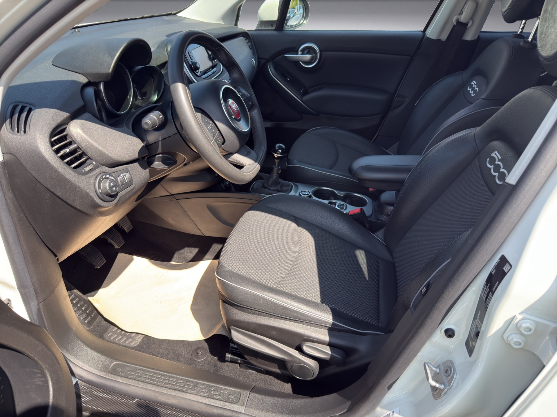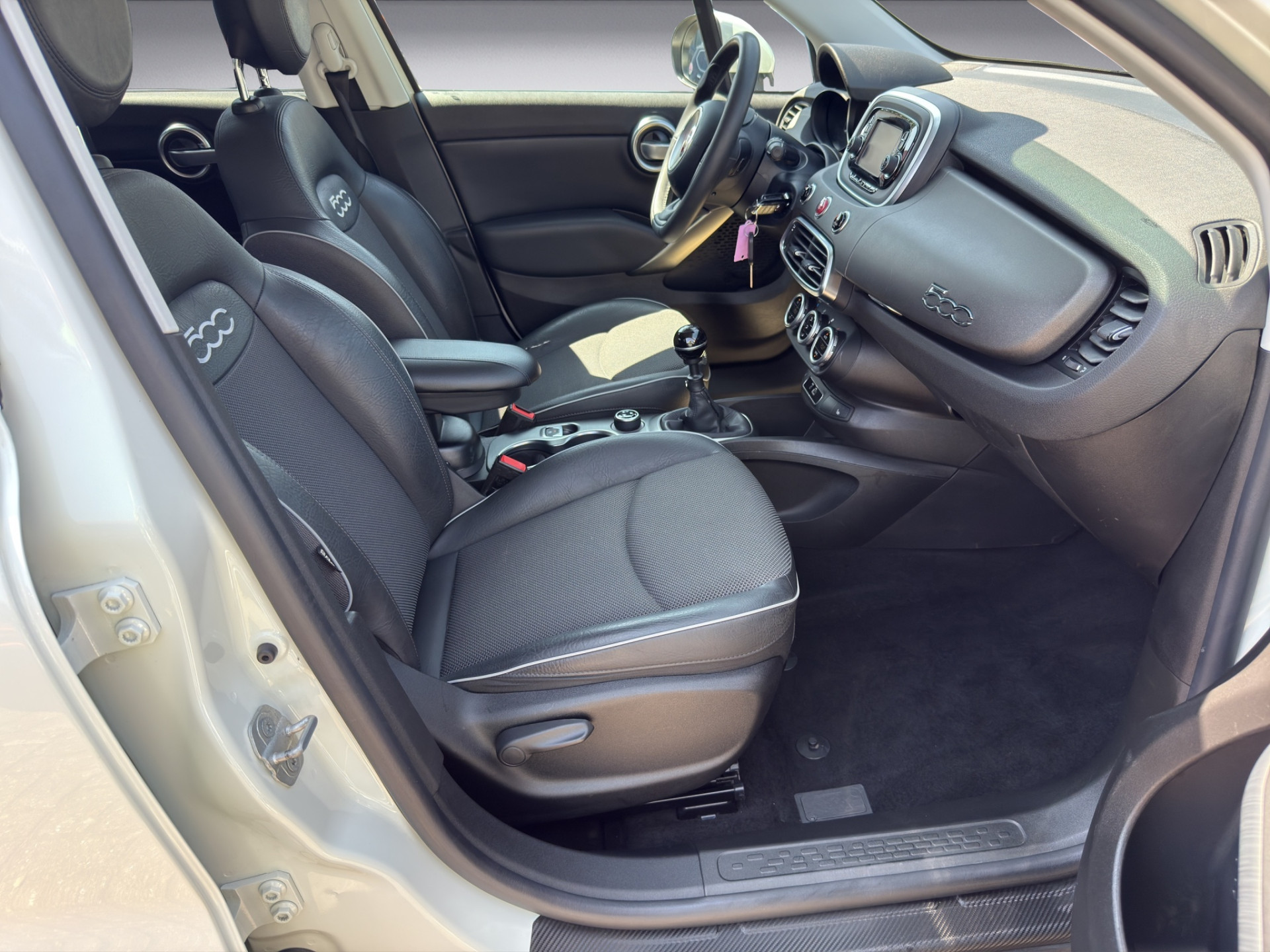 - *Design-Kit Cross**, Exterieurumfänge dunkel satiniert, Stoßfänger Off-Road-Design, **Elektrische Servolenkung Dual-Drive**, Servolenkung elektrisch, **Infotainment-System: UConnect (Touchscreen 5″)**, Blue & Me (Bluetooth mit Sprachsteuerung, USB-Schnittstelle, MP3), **Lenkrad mit Multifunktion für Audio-/Telefonbedienung**, Lenkrad (Leder), Anti-Blockier-System (ABS), Antriebs-Schlupfregelung (ASR), Antriebsart: Frontantrieb, Armaturenbrett farbig, Auspuffblende verchromt, Außenspiegel elektr. verstell- und heizbar, beide, Außenspiegel Wagenfarbe, Dachspoiler, Elektr. Bremskraftverteilung, Elektron. Stabilitäts-Programm (ESP / ESC), Fahrassistenz-System: Berganfahrhilfe, Fahrassistenz-System: Bremsassistent, Fahrassistenz-System: Fahrdynamik-System Mood Selector, Fensterheber elektrisch vorn + hinten, Geschwindigkeits-Regelanlage (Tempomat), Getriebe 6-Gang, Handschuhfach mit Kühlfunktion, Isofix-Aufnahmen für Kindersitz an Rücksitz, Karosserie: 5-türig, Kopf-Airbag-System vorn und hinten, Lenksäule (Lenkrad) verstellbar (vertikal / axial), LM-Felgen, Motor 1,4 Ltr. – 103 kW 16V Turbo KAT, Motor-Schleppmoment-Regulator (MSR), Nebelscheinwerfer mit integriertem Abbiegelicht, Parkbremse elektrisch, Radstand 2570 mm, Reifendruck-Kontrollsystem, Rücksitz geteilt / klappbar (Asymmetrisch), Schadstoffarm nach Abgasnorm Euro 6, Schalt-/Wählhebelgriff Leder, Seitenairbag vorn, Seitenscheiben hinten und Heckscheibe abgedunkelt, Sicherheitsgurte höhenverstellbar, Sitz vorn links höhenverstellbar, Sitzbezug / Polsterung: Stoff, Sitzbezug / Polsterung: Stoff/Kunstleder, Sonnenblenden mit Spiegel (beleuchtet), Start/Stop-Anlage, Steckdose (12V-Anschluß) in Mittelkonsole, Steckdose (12V-Anschluß) vorn, Tagfahrlicht, USB-Schnittstelle, Wegfahrsperre, Zentralverriegelung mit Fernbedienung.